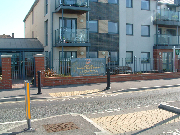 Costal balconies environmentally damaged. These we're re-sprayed with an epoxy coating, especially designed